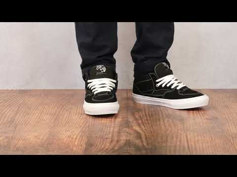 Steve Caballero’s signature Half Cab Pro, a heritage skate style upgraded for enhanced performance, features sturdy suede uppers, single-wrap foxing tape, UltraCush HD sockliners to keep the foot close to the board while providing the highest level of impact cushioning, and Vans original waffle outsoles made of a rubber that offers grip and support. The Half Cab Pro also includes DURACAP reinforcement rubber underlays in high wear areas for unrivaled durability and Pro Vulc Lite construction to deliver the best in boardfeel, flex, and traction.